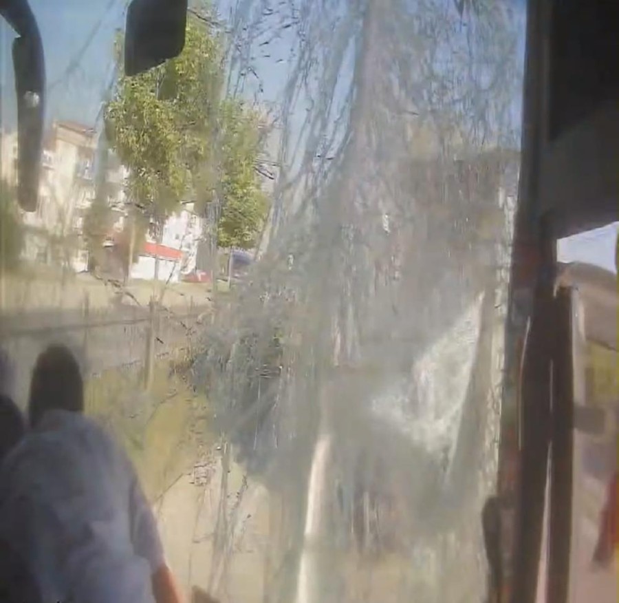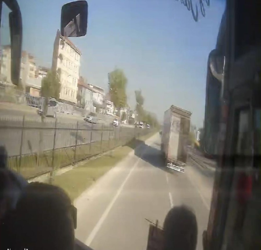Kaza anı otobüsün kamerasına saniye saniye yansıdı.