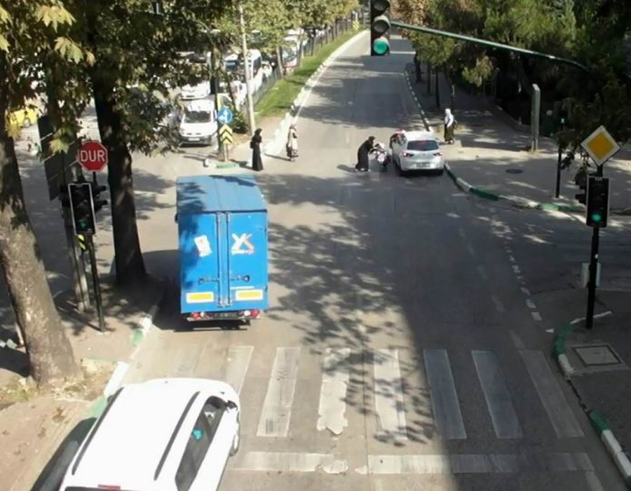 Bursa'da şehir merkezinde meydana gelen trafik kazaları MOBESE kameralarına yansıdı. Kazalarda yayalar ve sürücülerin ne kadar dikkatsiz olduğu gözler önüne serildi. İlk kazada, yayalara kırmızı yandığı sırada bebek arabasıyla karşıya geçmek isteyen 5 kişi yola çıktı. Bu sırada kendisine yeşil ışık yanan araç sürücüsü yayaları görünce durmaya çalıştı. 2 kişi yola çıkar çıkmaz dururken, bebek arabasını kullanan kadın ve diğer 2 kişi koşar adımlarla karşıya geçmek istedi. Araç sürücüsü direksiyonu kırmasına rağmen bir kişiye çarptı. Bu sırada araç bebek aracına çarptı. Ancak annenin sıkı tutmasıyla bebek arabası devrilmedi. Yere düşen diğer kadın ise bir süre sonra ayağa kalktı.