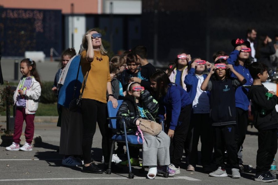 Çocukların yanı sıra bazı velilerin de güneş tutulmasını gözlemlediği görüldü.
