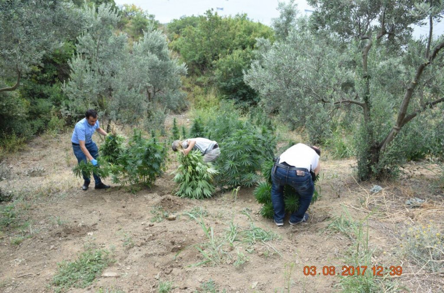 Bursa'nın Gemlik ilçesinde 2 bin 54 kök Hint keneviri, bir miktar Hint keneviri tohumu, bir adet ruhsatsız av tüfeği ve bu tüfeğe ait fişekler ele geçirildi.