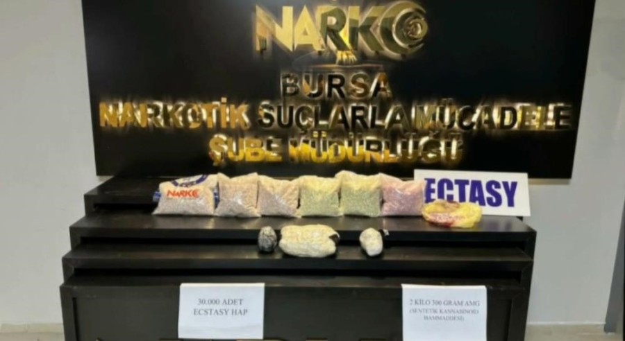 Bursa İl Emniyet Müdürlüğü Narkotik Suçlarla Mücadele Şube Müdürlüğü'nün, Cumhuriyet Başsavcılığı koordinesinde yürütülen soruşturma kapsamında, özel harekât, çevik kuvvet, dedektör köpekler, İHA'lar ve 100 ekiple toplam 600 personel katıldı. Şafak vakti yürütülen operasyonda kapılar koçbaşlarıyla kırıldı. Ekiplerin eş zamanlı baskın yaptığı adreslerde ve arama yapılan tırlarda, 2 kilo 700 gram kokain, bin 500 kök Hint keneviri bitkisi, 30 bin adet ecstasy hap, 2 kilo 300 gram sentetik kannabinoid ham maddesi, 250 gram esrar, 160 adet sentetik ecza, 35 gram sentetik kannabinoid madde 41 şüpheliyle birlikte yakalandı. Ayrıca operasyonda 3 ruhsatsız tabanca, 7 adet fişek, 2 hassas terazi ve uyuşturucu ticaretinden elde edildiği değerlendirilen 180 bin TL nakit para da ele geçirildi.