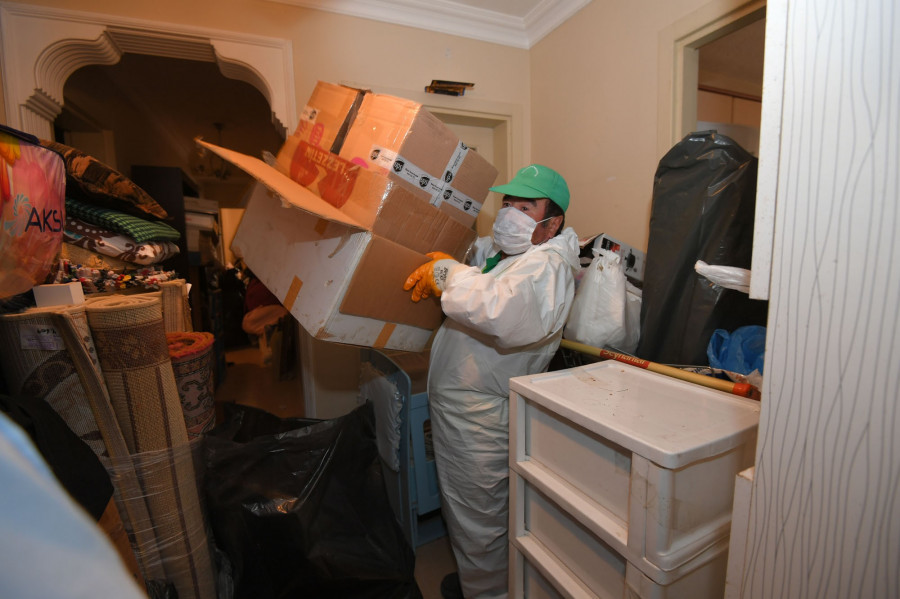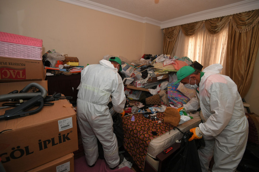 Çevreye yaydığı kötü koku sebebiyle vatandaşların şikayette bulunduğu daireye giden Osmangazi Belediyesi Temizlik İşleri Müdürlüğü ve Zabıta Müdürlüğü ekipleri, evin eski eşya ve çöplerle dolu olduğunu tespit etti. Yunuseli Mahallesi'ndeki toplu konutlarda geçen şubat ayında da temizlenen daireye kapısına giden ekipler, ev sahiplerinin evde olmaması üzerine mahkeme kararıyla kapıyı çilingir ile açarak daireye girdi. Mutfak ve banyo dahil tüm odaları ağzına kadar çöp ve eski eşya dolu olan evin temizlenmesi için çalışmalara başlayan belediye ekipleri, evden 5 kamyon çöp ve eski eşya çıkardı. Belediye ekipleri tarafından tamamen boşaltılan ev, daha sonra ilaçlanarak dezenfekte edildi.