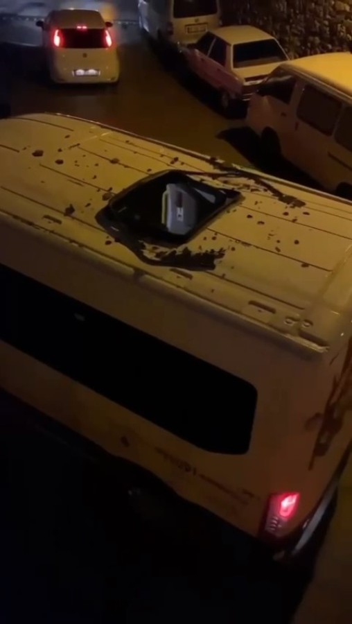Merkez Osmangazi ilçesi Mollagürani Mahallesi'nde park halindeki bir servis minibüsünün üzerine evden kopan baca parçası düştü.