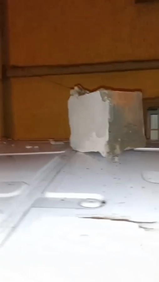 Servisin havalandırma camını kırarak içeri giren baca parçası, maddi hasar meydana getirdi. Kaza, şans eseri kimse yara almadan atlatıldı.