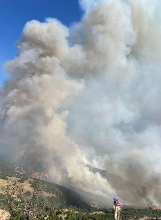 Öte yandan, Büyükorhan Belediye Başkanı Kamil Turhan, "Yangına havadan ve karadan müdahaleler sürüyor. Bir yandan alevler kontrol altına alınmaya çalışılırken, rüzgarın etkisi ile diğer tarafa sıçrıyor. Hava araçları Kınık Barajı'ndan su alarak müdahalesini sürdürüyor. Orman Bölge Müdürlüğü'nün yanı sıra çevre ilçelerden de takviye itfaiye araçları ve personeller yangını söndürme çalışmalarına katıldı. Yangın Büyükorhan, Balıkesir'in Dursunbey ilçesi ile Harmancık ilçeleri arasında bulunan ormanlık alanda sürüyor" dedi.