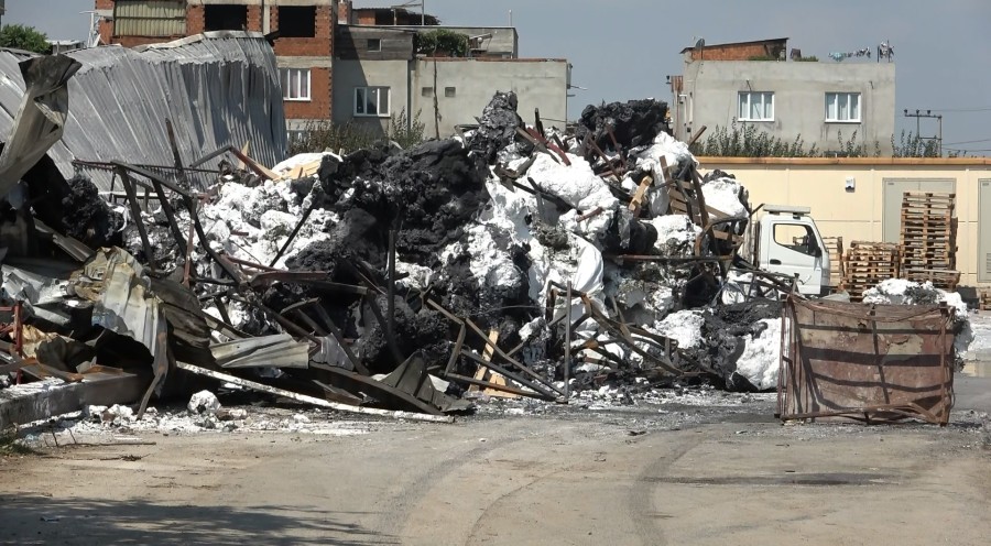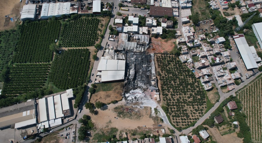 Gece boyu süren soğutma çalışmalarının ardından fabrika sahipleri yangın bölgesine gelerek acı tabloyu gördü. Bölge havadan dron ile görüntülendi. Görüntüler yangının büyüklüğünü de bir kez daha gözler önüne serdi. 5 bin dönümülük fabrika enkazı şavaş alanlarını aratmadı.