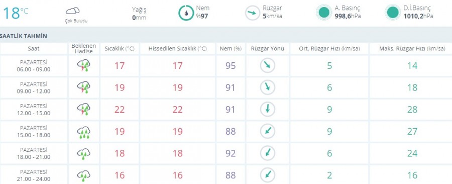 Meteoroloji'den aldığımız bilgilere göre dün gece etkisini gösteren sağnak yağış bugünde devam edecek. Sabahtan öğle saatine kadar gökgürültülü sağnak yağış beklenirken en yüksek sıcaklık öğle saatlerinde 22 derece olarak tahmin ediliyor.