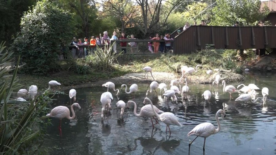 Flamingoların beslenmesi ise çocukların çok dikkatini çekti. Bakıcısı tarafından bırakılan yiyecekleri yemek için uğraş veren flamingolar, farklı yeme teknikleriyle beğeni topladı.