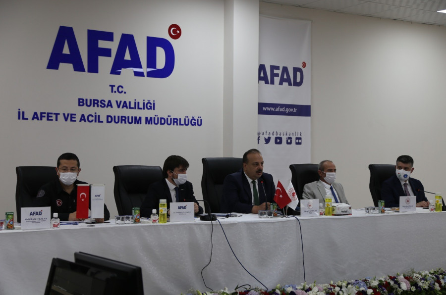 Türkiye Afet Müdahale Planı (TAMP) kapsamında İl Afet ve Acil Durum Müdürlüğü (AFAD) tarafından hazırlanan çalışma grupları toplantısı, AFAD Başkanı Mehmet Güllüoğlu ve Bursa Valisi Yakup Canbolat'ın iştirakiyle gerçekleştirildi. Bursa İl Afet ve Acil Durum Müdürlüğünde gerçekleştirilen toplantıya vali yardımcıları, kaymakamlar, İl Emniyet Müdürü, İl Jandarma Komutanı, TAMP ile ilgili kurum müdürleri ve sivil toplum kuruluşları katıldı.