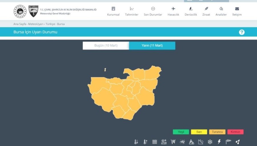 Meteoroloji Genel Müdürlüğü Bursa için fırtına uyarısında bulundu.