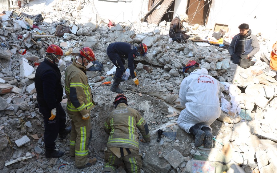 Bir taraftan yardım dağıtımları ile diğer taraftan enkaz kaldırma çalışmalarına verilen destek devam ederken, itfaiye ekipleri 'Hataylıların enkaz başındaki umutlu bekleyişlerine' arama çalışmaları ile destek veriyor.