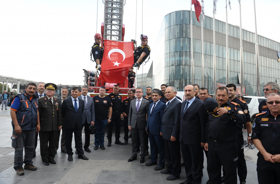 itfaiye teşkilatının kuruluşunun 303. yılı ve İtfaiye Haftası münasebetiyle Kent Meydanı'nda bir dizi faaliyet düzenlendi. Büyükşehir Belediyesi itfaiye ekiplerinin Türk bayrağı açarak ipten aşağı indiği gösteri nefes kesti. İtfaiye merdiveninden komando gibi inen itfaiyeciler büyük alkış aldı. Çocuklara oyuncak itfaiye aracı ve vatandaşa itfaiyenin faaliyetlerini anlatan broşürler dağıtıldı. Ayrıca çeşitli arama kurtarma ekipleri de stantlar açtı.