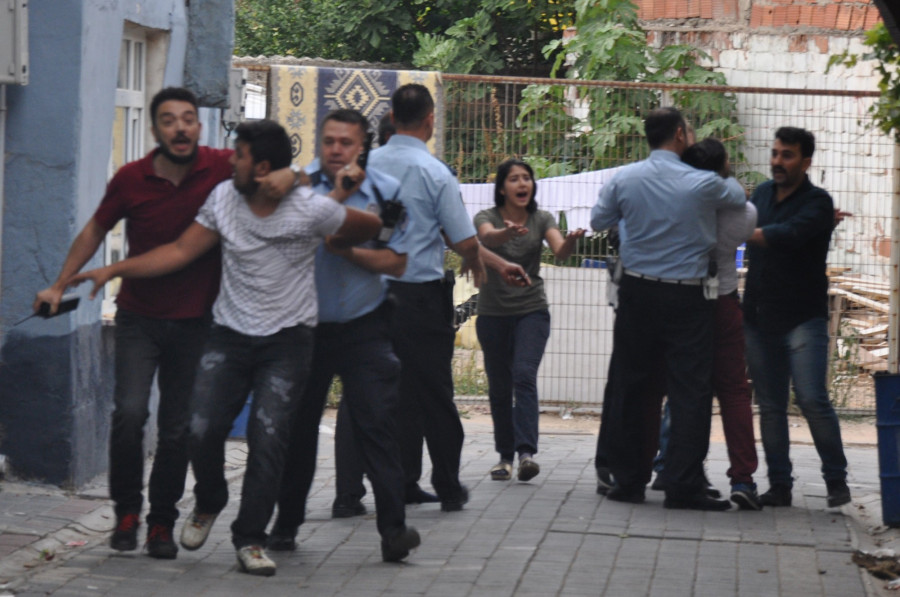 Edinilen bilgiye göre, hakkında çeşitli suçlardan araması bulunan E.L., emniyet ekibi tarafından Sinanbey Mahallesi'ndeki bir sokakta fark edildi. Polisi fark eden şahıs kaçmaya başladı. Ekip otosundan inen iki polis memuru ile şahıs arasında kovalamaca başladı. Kovalamaca sonucu yakalanan şahsın yakınları polis memurlarına sopalarla saldırdı.