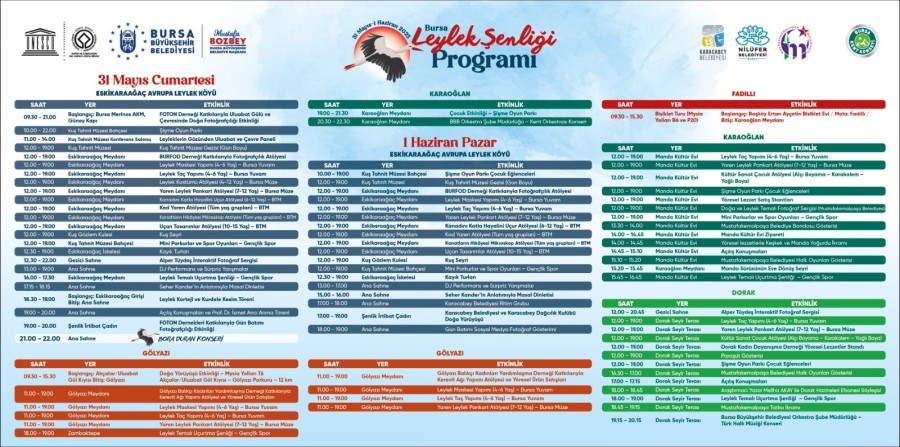 Bursa Büyükşehir Belediyesi ve Bursa Kent Konseyi öncülüğünde düzenlenen 'Bursa Leylek Şenliği', 31 Mayıs Cumartesi günü dolu dolu içerikleriyle başlıyor.