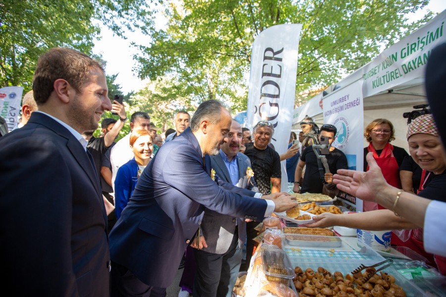 Allah'a hamdolsun çok da güzel gidiyoruz. Bu seneki parolamız da 'Yeşil Bursa Yeşil Gastronomi'. Çünkü bizim 30 tane coğrafi işaretli ürünümüz var. 5 tane de bekleyen var. En son Yenişehir Biberi ve Keles Kirazı'nın tescilini aldık. Bursa ürünün topraktan ta ki sofrada yemeğe dönüşene kadarki sürecin tüm aşamalarına ev sahipliği yapıyor. Bu ürünlerin hepsi Bursa'da yetişiyor. Burada sadece Bursa'nın ürünleri değil, Erzurum'un cağ döneri de var Urfa'nın kebabı da var. Çünkü Bursa gerçekten renkli bir mozaik. Bursa'da 80 vilayeti, Balkanları Kafkasları bulabilirsiniz. Burada kadın kooperatiflerimiz var. Yine depremzede 11 ilimize davet gönderdik. 8 ilimizden dernekler burada. Emeği geçenlere, burada olup bizlere güç verenlere teşekkür ediyorum. Festivalimiz hayırlı olsun" diye konuştu.