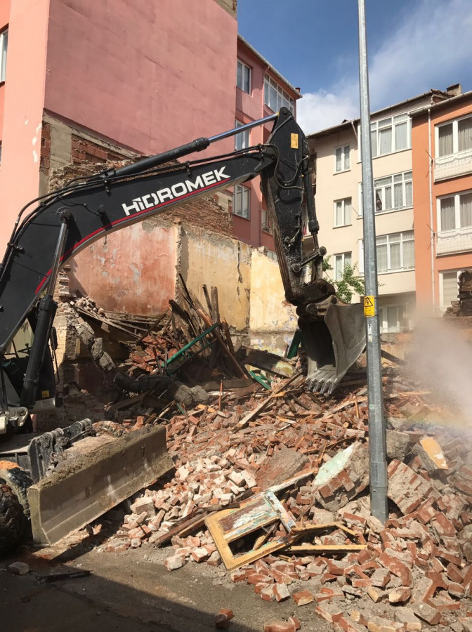Yıkım çalışmaları Gemlik Belediye Başkanı Refik Yılmaz, Belediye Başkan Yardımcıları Ahmet Avcı ve Vedat Büyükgölcigezli'nin yanı sıra Fen İşleri Müdürü Hasan Tahsin Aydın gözetiminde gerçekleştiriliyor.