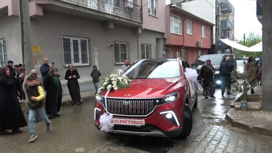 Türkiye'nin milli otomobili Togg'un Gemlik'teki fabrikasında güvenlik görevlisi olarak çalıştığını dile getiren gelin Habibe Fatsa Özdemir ise, "Çok heyecanlıyım. Hem üzüntülüyüm hem de çok mutluyum. Aslında ben ilk Togg'da çalışmaya başladığımda Hüseyin, "Kırmızı rengini bize versinler de gelin arabası yapalım" demişti. Rabbim nasip etti, kırmızı Togg gelin arabam oldu. Bize bu mutluluğu yaşatan herkese teşekkür ederim" dedi.