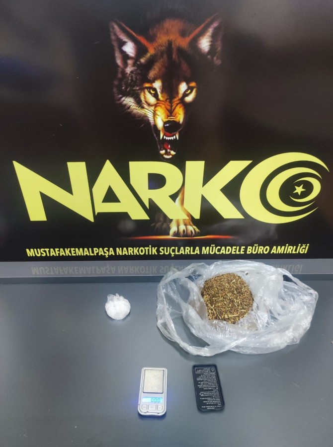 Mustafakemalpaşa Narkotik Suçlarla Mücadele Büro Amirliği ekipleri, ilçeye uyuşturucu madde getirileceği bilgisi aldı. Durum üzerine harekete geçen ekipler, ilçe terminalinde şüpheli C.Ç.(28)'i suçüstü yakalayarak gözaltına aldı. C.Ç., emniyetteki işlemlerinin ardından çıkarıldığı mahkemece tutuklanarak cezaevine gönderildi.