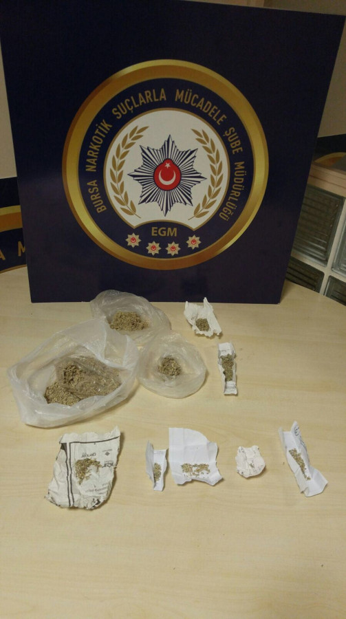 Nilüfer'in Esentepe Mahallesi'ne uyuşturucu satın almak için gelen F.Ö., İ.Y., E.T. ve R.Ç. isimli şahıslar polis tarafından gözaltına alındı. Yakalanan şahısların üzerinde bir miktar sentetik kannobinoid ele geçirildi. Bu kişilerin uyuşturucuyu İ.Ş. isimli şahıstan temin ettikleri öğrenildi. İ.Ş'nin üzerinde ve ikametinde yapılan aramada 51 gram sentetik kannobinoid ele geçirildi.