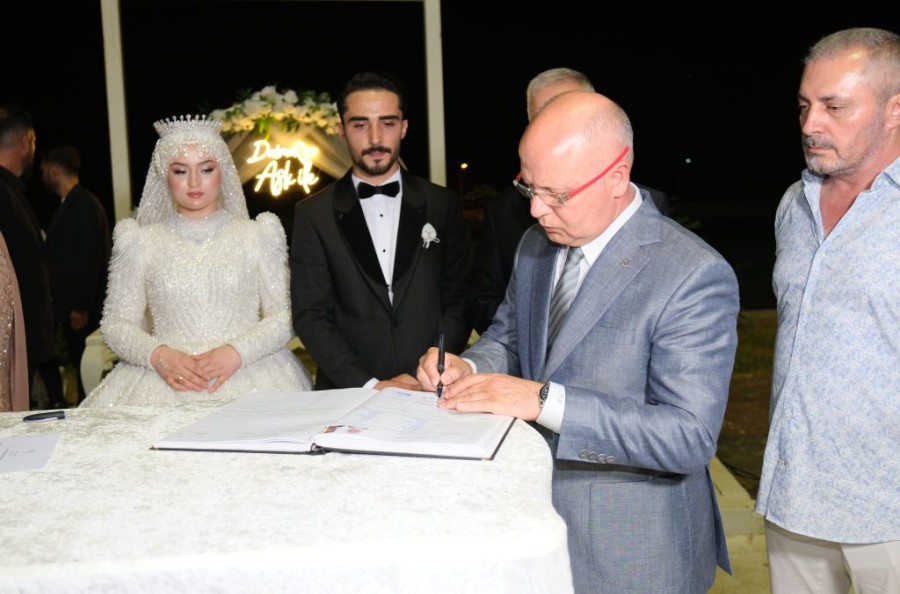 Konukların alkışları eşliğinde havuz başında gerçekleşen nikahı, Bursa İl Müftü Yardımcısı Hasan Canlı kıydı. Nikah şahitliklerini ise İl Başkanı Davut Gürkan , Milletvekili Muhammet Müfit Aydın, İçişleri Bakanlığı İdari ve Mali İşler Özel Kalem Müdürü Özbey Tan, Gürsu Belediye Başkanı Mustafa Işık, AK Parti Gürsu İlçe Başkanı Selçuk Karaduman, İ. Hakkı Fırat Aleyna Ortaç, AK Parti Muş İlbaşkan Yardımcısı Arafat Ommuş, Osmangazi İlçe Başkanı Adnan Kurtuluş ve Yıldırım İlçe Başkanı İrfan Akkaya yaptı.