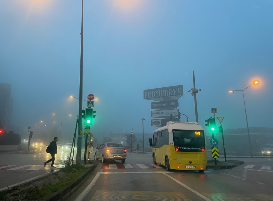 Özellikle Nilüfer bölgesinde sis trafikte sürücülere ve yayalara zor anlar yaşattı.