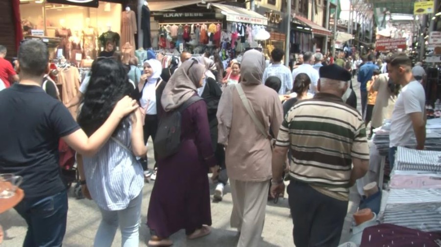Bursa'nın Osmangazi ilçesinde yer alan tarihi Kapalı Çarşı ve Hanlar Bölgesi'nde bayram yoğunluğu başladı. Bursa merkezden ve çevre şehirlerden gelen vatandaşlar çarşıda kalabalık oluştururken, bayrama kadar yoğunluğun artması bekleniyor.