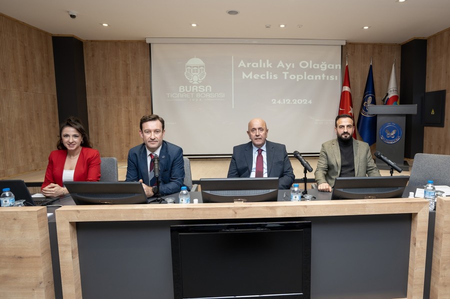 Bursa Ticaret Borsası (Bursa TB), Aralık ayı olağan Meclis toplantısı Doğanbey'de bulunan hizmet binasında yapıldı. Meclis Başkanı Mehmet Aydın başkanlığında, Bursa TB Yönetim Kurulu Başkanı Özer Matlı ve Meclis Üyelerinin yer aldığı yılın son meclis toplantısında, 2024 yılındaki proje ve faaliyetler ile yeni yılda hedeflenen çalışmalar değerlendirildi.