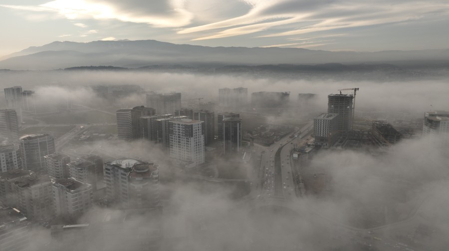 Bursa'da sabah saatlerinde etkili olan sis nedeniyle şehir gözlerden kayboldu. Şehrin gökyüzünden çekilen drone görüntüleri hem muhteşem manzara oluştururken, hem de korku film sahnelerini aratmadı.
