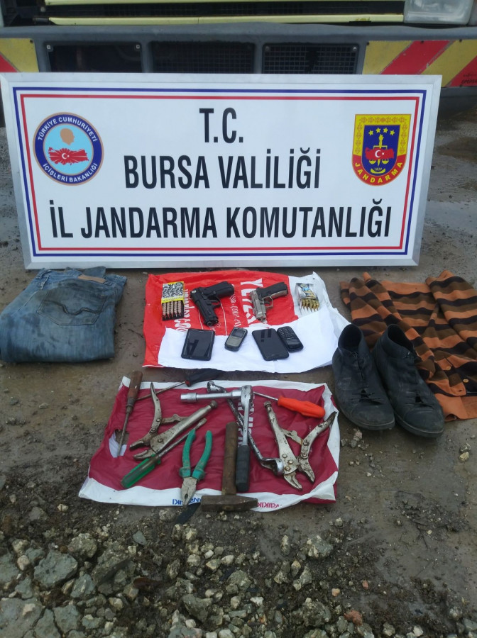 Jandarma ekiplerinin yaptığı şafak baskınıyla yakalandı. Uzun süredir jandarmanın peşinde olduğu şüpheliler yapılan baskınla birlikte göz altına alındı. Şüphelilerin üst ve ikamet aramalarında 2 adet kuru sıkı tabanca, bunlara ait 35 mermi, 5 parça üzeri yağlı kıyafet ve hırsızlıkta kullanılan suç aletleri bulundu.