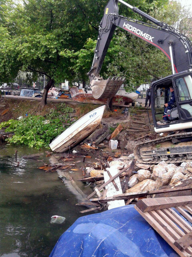 Gemlik Belediyesi, derme çatma kulübeler, barakalar ve platformları yıkarak yenileme çalışmalarına start verdi.