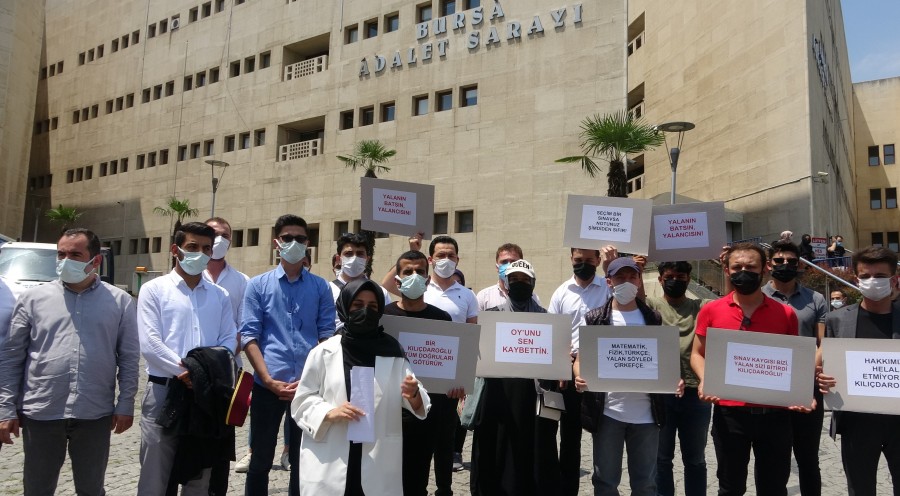 Bursa'da da Kübra Nur Güner ve bir grup arkadaşı birlikte adliyeye gelerek suç duyurusunda bulundu. Güner, "25 Haziran Cuma günü, yani üniversite sınavından bir gün evvel ortaya atılan yalan haber motivasyonumuzu altüst etmiş ve sınava girecek 2 milyon 607 bin 903 öğrenci arkadaşımızı ve milyonları bulan ailelerini olumsuz şekilde etkilemiştir. CHP Genel Başkanı her zaman olduğu gibi hiçbir teyide ihtiyaç duymadan sorumsuzca davranarak yalan söylemiş ve yalanın yayılmasında aktör olmuştur. Biz buna artık şaşırmıyoruz. Ama gençlere söylenen bu yalandan günlerdir çok rahatsızız sayın Kılıçdaroğlu. Bir yıl boyunca hazırlanmış olduğumuz sınavın ilk oturumu bu yalan haberin etkisi altında sonlanmıştır. Mağduriyetimiz ortadadır. Türkiye'nin ana muhalefet partisi genel başkanının, gireceğimiz en önemli sınavlardan biri öncesinde bu basit yalana sarılması, en hafif tabirle sorumsuzluktur. Yalanı yayan ve bizlere ulaşmasına sebebiyet veren basın kuruluşları servis ettikleri yalan haberden dolayı ufak bir mahcubiyet hissetmiş olacak ki, haberi geri çekip kamuoyundan özür dilemiştir. Fakat Kılıçdaroğlu, gençlerin 'Özür dile' çağrısını ciddiye almamıştır. Sayın Kılıçdaroğlu, yine şaşırtmayarak skandal bir açıklama ile biz gençleri 'trol' olarak nitelendirme cüretini kendisinde bulmuş ve bizleri görmezden gelmiştir. İşte sayın Kılıçdaroğlu, trol dediğiniz biz gençler, bize yaşattığınız bu manevî yıkım sebebiyle size 1 liralık manevi tazminat davası açmak üzere buradayız. Sizin deyiminizle biz troller şimdi adliye binası önünden gür bir sesle sesleniyoruz; yalan bir haberin peşinden koşup bizleri ve ailelerimizi manipüle ettiğiniz için bizlere çok büyük bir özür borçlusunuz" dedi.