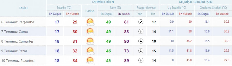 Bursa'da bugün sıcaklık en yüksek 29 derece olacak. Hava az bulutlu ve açık. Rüzgarın bugün de yer yer kuvvetli esmesi bekleniyor. Sıcaklık pazara kadar birer derece artacak ancak yüksek nem oranı Bursalıları bir hayli bunaltacak. Cumartesi nem oranı yüzde 90'a kadar çıkacak.