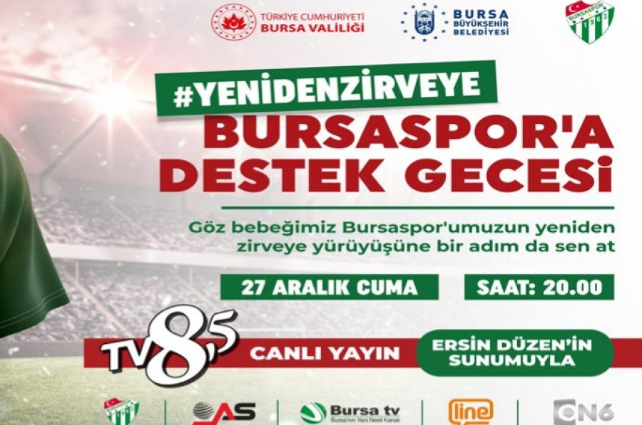 Bursaspor'a Destek Gecesi 27 Aralık Cuma günü saat 20.00'de TV 8,5 kanalında düzenlenecek.