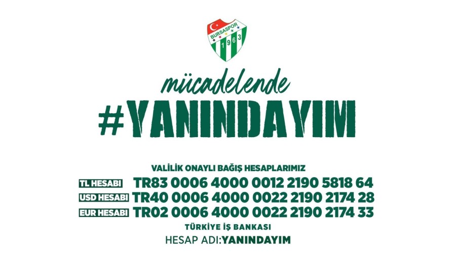"Saygıdeğer Bursalılar, Sayın Valimiz Mahmut Demirtaş'ın öncülüğünde, Bakanımız Mustafa Varank, Büyükşehir Belediye Başkanımız Mustafa Bozbey, BTSO Başkanımız İbrahim Burkay ve şehrimizin milletvekilleri, belediye başkanlarımızın himayelerinde, Bursasporumuz için, 'Yanındayım' kampanyamız resmen başlamıştır" denildi.