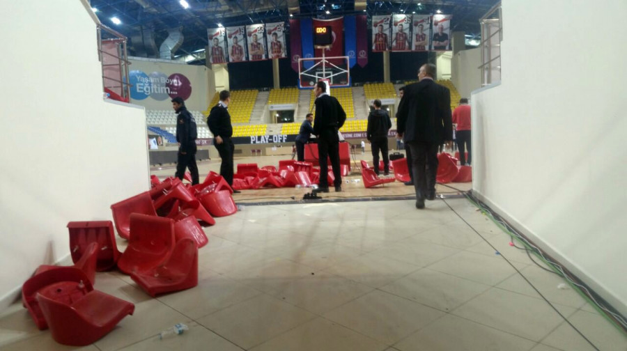 Türkiye Basketbol Ligi Play-Off dörtlü final 5. haftasında Nesine.Com Eskişehir Basket, Bursaspor Durmazlar'ı 82-66 mağlup ettiği maçta olaylar çıktı.