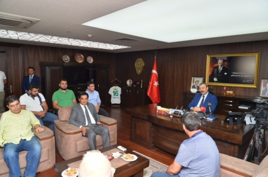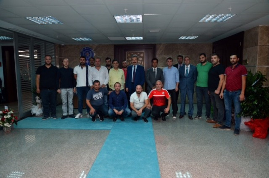 Bursaspor tribün liderleri yeni İl Emniyet Müdürü Osman Ak'a makamında hoş geldin ziyaretinde bulundu.