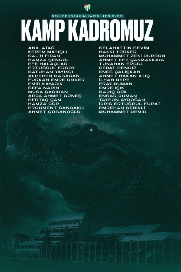 Yeni sezona iddialı bir kadroyla hazırlanan Bursaspor'da kamp çalışmaları öncesi kadro netleşti. Teknik direktör Adem Çağlayan yönetimindeki yeşil-beyazlılar, Özlüce İbrahim Yazıcı Tesisleri'nde toplanarak hazırlıklara start verecek.