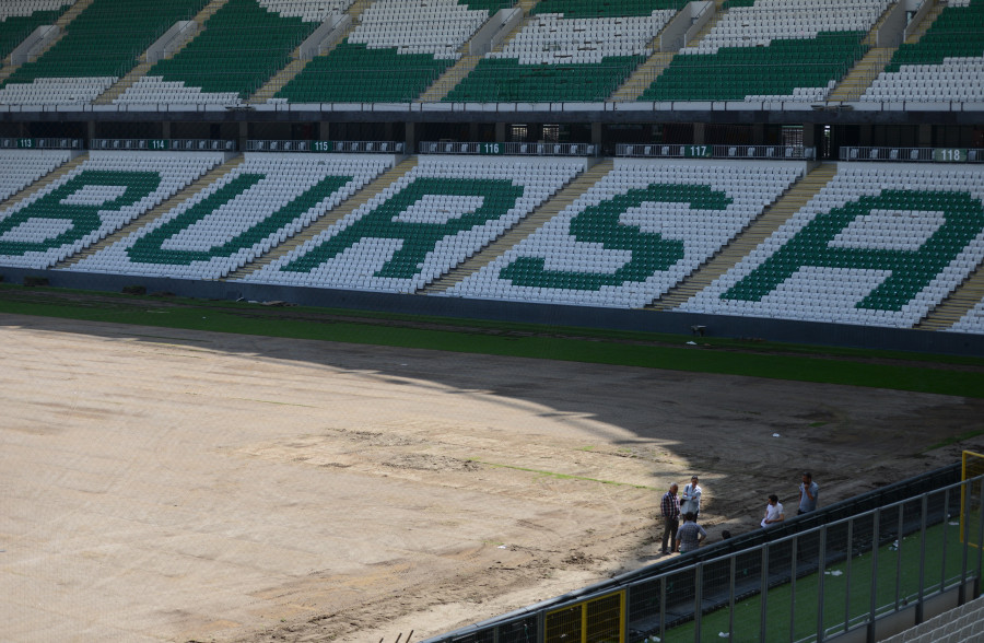 Bursaspor'un maçlarına ev sahipliği yapan Bursa Büyükşehir Belediye Stadyumu'nun zemini, 2017-2018 futbol sezonuna hibrit çim sistemi uygulanarak hazırlanıyor.