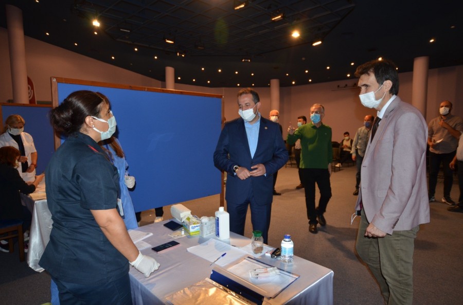 Bursa Uluslararası Tekstil ve Ticaret Merkezi (BUTTİM) ile Osmangazi İlçe Sağlık Müdürlüğü'nün Koronavirüs ile mücadele kapsamında yürüttüğü ortak çalışma sonucu kat maliklerine BioNTech aşısının ilk dozu uygulandı. Aşı kampanyasını yerinde inceleyen AK Parti Bursa Milletvekili Refik Özen, "Aşı hakkı olanların ayağına kadar hizmetin gelmesi vesilesiyle bu örnek davranıştan dolayı başta sağlık çalışanlarımız olmak üzere, BUTTİM Yönetimi'ni tebrik ediyorum" dedi.