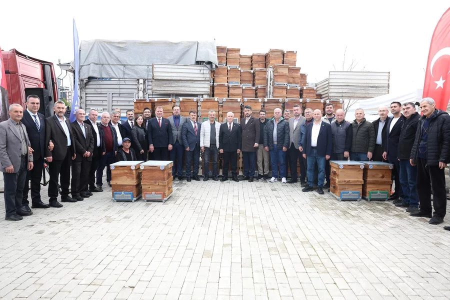 Konuşmaların ardından Başkan Mustafa Bozbey ve belediye yöneticileri tarafından üreticilere kovanları teslim edildi.