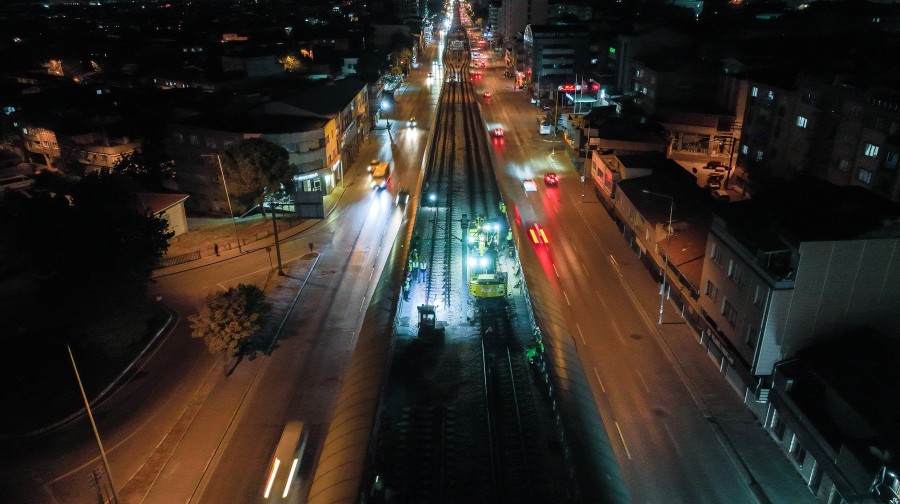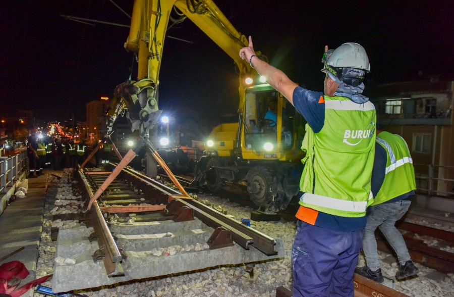 Bursa'da ulaşım sorununun ortadan kaldırılması için yeni yollar, köprü ve kavşaklarla karayolu ağını güçlendiren Büyükşehir Belediyesi, toplu ulaşımın bel kemiğini oluşturan raylı sistemleri daha cazip hale getirmek ve konforu artırmak için bakım ve yenileme işlemlerini de sürdürüyor. BURULAŞ ekipleri, 2008 yılında açılan ve 17 yıldır herhangi bir işlem yapılmayan Gökdere viyadüğünde genleşme contalarının değişimini ve çevre düzenleme çalışmalarını gerçekleştirdi. Gündüz saatlerinde sistemin aksamaması ve vatandaşların mağdur olmaması için saat 22.00'den sonra gerçekleştirilen işlemler, ekiplerin özverili çalışmalarıyla sorunsuz bir şekilde yürütüldü. Tren seferlerinin geçici olarak durdurulduğu anlarda ise, Merinos-Kestel hatları arasında ring otobüs seferleri düzenlendi. Otobüsler, tren saatlerine uyumlu şekilde hizmet verdi. BursaRay hatlarındaki yenileme ve bakım çalışmaları önümüzdeki günlerde de planlı bir şekilde devam edecek.
