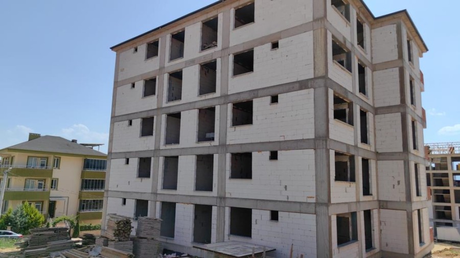 İnşaatın 4'üncü katında çalışma yapan ustalar, yerde parçalanmış bir yazar kasa buldu. İnşaat ustaları durumu polis ekiplerine haber verdi.