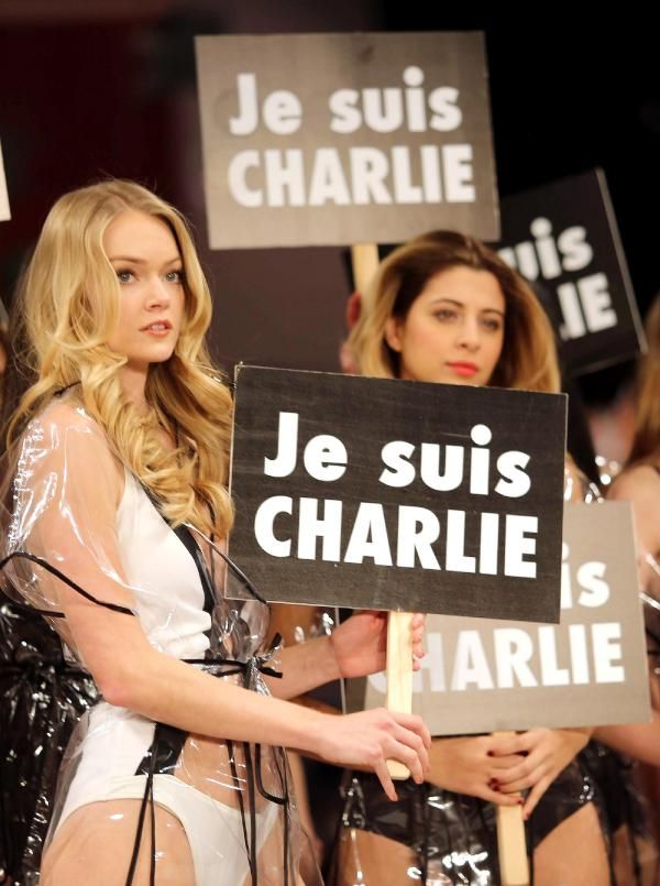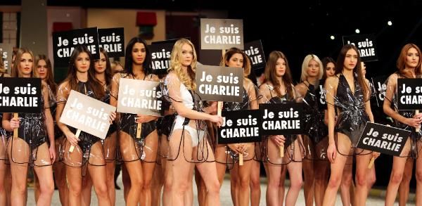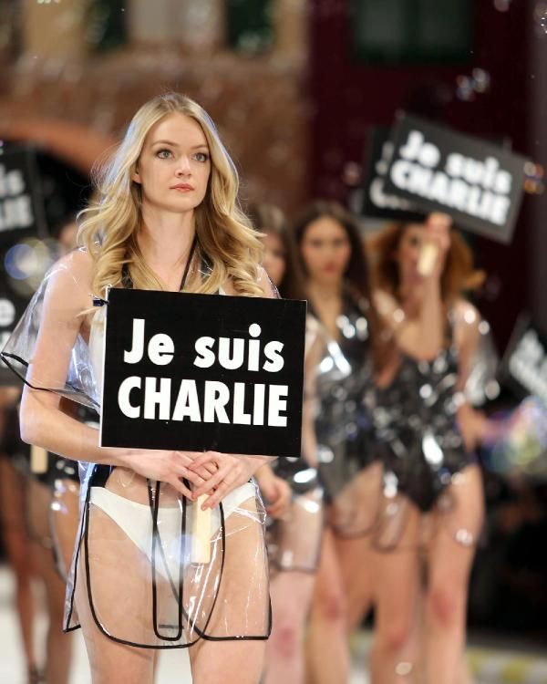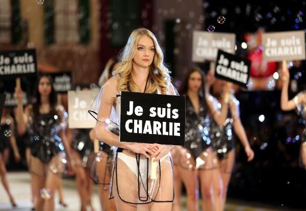 ANTALYA'da düzenlenen Dosso Dossi Fashion Show'da podyuma çıkan Victoria Secret mankeni Lindsay Ellingson, Paris'te 12 kişinin ölümüyle sonuçlanan Charlie Hebdo dergisi baskınını 'Je suis Charlie: Ben Charlie'yim' yazılı dövizle protesto etti. Podyumda Ellingson'a eşlik eden diğer mankenler de aynı dövizi taşıdı.