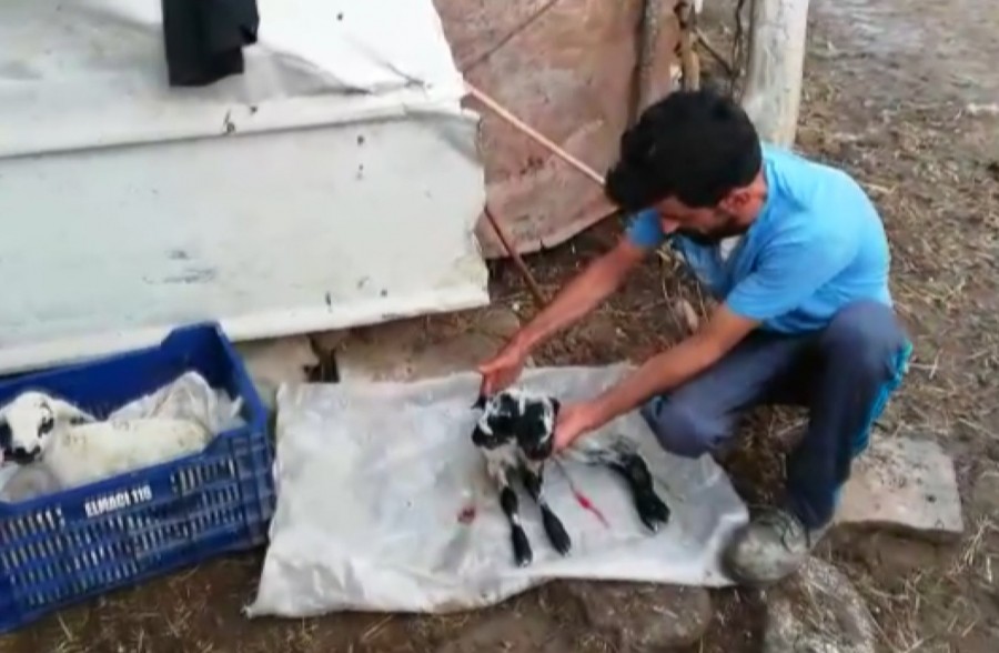 Olayı anlatan Fethim Kurumuş, "Geçen sene üçüz kuzu dünyaya getiren koyunumuz, bu seferde doğum yapmakta zorlanınca veteriner çağırdık. Veteriner kuzulardan birinin büyük olduğunu söyledi. Zorlukla dünyaya getirdik. Kuzulardan birinin sağlık durumu iyi. Diğer kuzu ise çift başlı doğdu. Ben şaşkına döndüm. Haberlerde böyle şeyler görüyorduk. Olur mu böyle şey diyorduk. Şimdi kendi başımıza geldi" dedi.
