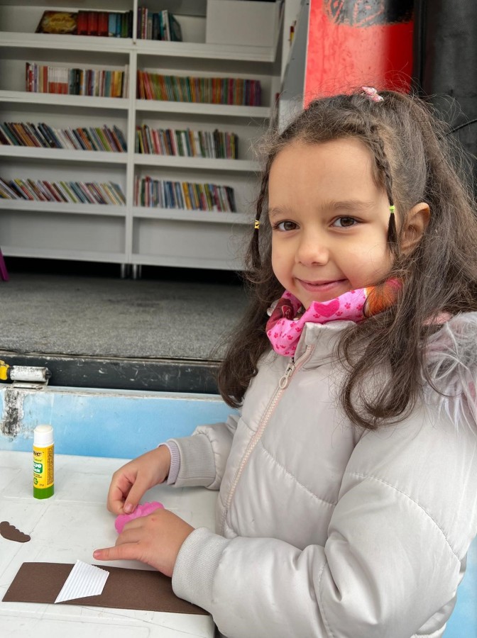 6-18 yaş arasındaki çocuklara hitap eden 600 kitaba ev sahipliği yapan Gezici Kütüphane, hafta içi her gün iki mahallede çocuklar ile buluşuyor. Gezici Kütüphane'nin Yenibağlar Mahallesi'nde gerçekleştirdiği 'Hayal Et Tasarla' atölyesine katılan çocuklar, kitap ayracı yaptı. Kağıt, boya, fırça ve palet kullanarak tamamen kendilerine özgü kitap ayraçları tasarlayan çocuklar, el becerilerini keşfetti. Etkinliğe katılan çocuklar el becerilerini geliştirmenin yanı sıra keyifli hatıralar da biriktirdi.