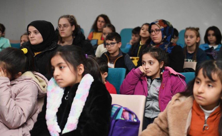 Söyleşi esnasında etkinliğe katılan çocuklar, doğa ve hayvanlarla ilgili merak ettiklerini doğa fotoğrafçısı Alper Tüydeş'e sordu.