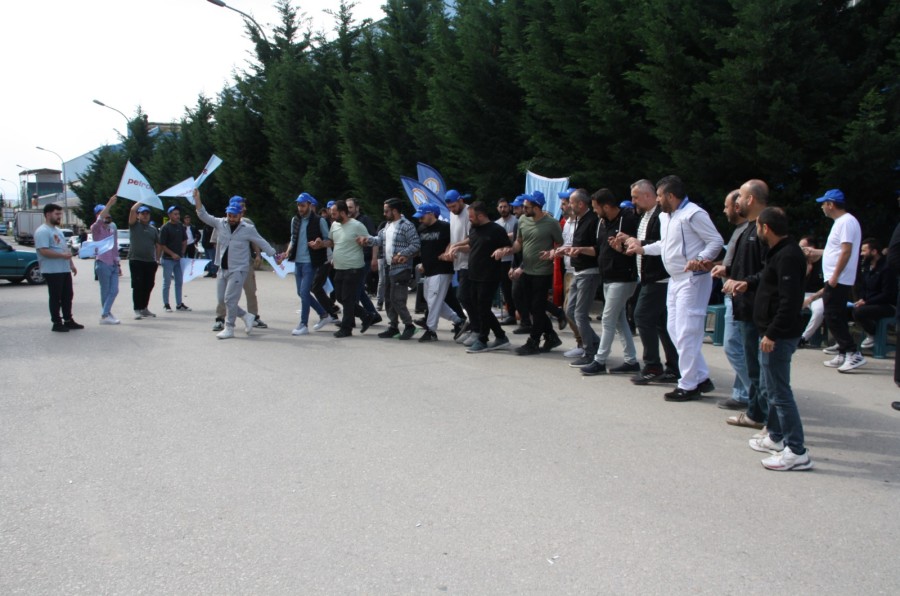 Petrol-İş sendikasının fabrikada 10 yıldır örgütlü olduğunu ve yaşananlar karşısında atılması gereken adımların iş sözleşmesinde net ifadelerle yer aldığını belirten Petrol-İş Bursa Şube Başkanı Ersin Birgül, "Biz sendika olarak bu durumun çözümü noktasında adımlar attık. Diyaloglar kurduk. Arkadaşımıza özür de dilettik ama özür bile kabul görmedi. Yaklaşımın direkt işten çıkartma değil uygun cezalardan biri olması yönündeki talebimizi de ilettik. Ama bizim yaklaşımımız karşılıksız kaldı. Müsamaha gösterilmeyerek 'biz iş hakkını sonlandırıyoruz' gibi bir durum oluştu. 2 günlük süreçte diyaloglarımız karşılıksız kalınca mücadele kararı aldık. Buradan hep birlikte sesimizi duyurarak çözüm noktası arıyoruz. Bu yaşanan hakka hukuka uygun bir şey değil. Arkadaşımız daha önce bu iş yerinde iş yeri işçi temsilciliği de yapmış bir arkadaşımız. 17 yıldır burada çalışıyor, alın teri döküyor. Buraya girdiğinde gencecik, sapasağlam bir arkadaşımızken şu anda belinde 2, boynunda 3 fıtık var. Kolu yarıdan yukarıya kaldıramıyor. Bu fabrikada bu hale gelmiş bir arkadaşımızın iş akdi, fabrikaya daha dün yönetici olarak gelmiş bir işveren temsilcisiyle sade bir diyaloğunda 'Sadece sesini onun ses tonundan daha yüksek kullandığı' gerekçesiyle acımasız bir şekilde sonlandırılmaya çalışılıyor. Toplu sözleşmemizde zaten böyle bir durumun karşılığı net bir şekilde belirtilmiş. Uyarı, yazılı uyarı, yevmiye cezası gibi tekrar durumlarında yaşanacaklar açık ve net. Arkadaşımızla ilgili sorun giderilene kadar buradayız. Çözüm yolu arayalım dedik. Bir araya gelelim dedik. İlk başlarda bir yaklaşımları vardı ama sonradan ondan da uzaklaştılar. Biz adım adım attıkça onlar geri çekildiler. Bir kişiye yapılmış haksızlık, herkese yapılmış tehdittir. Ben bunu savunuyorum. Bu minvalde yol alıyoruz. Çünkü bugün bu yapılana sessiz kalındığında yarın benzerlerinin ve bunun çoklarının yaşanacağını biliyoruz. Uyuşmazlık yaratan birkaç konu daha oldu aramızda. Oralarda da hep yapıcı yaklaşımlar gösterdik, sergilemeye çalıştık. Onlara da karşılık görmedik" dedi.