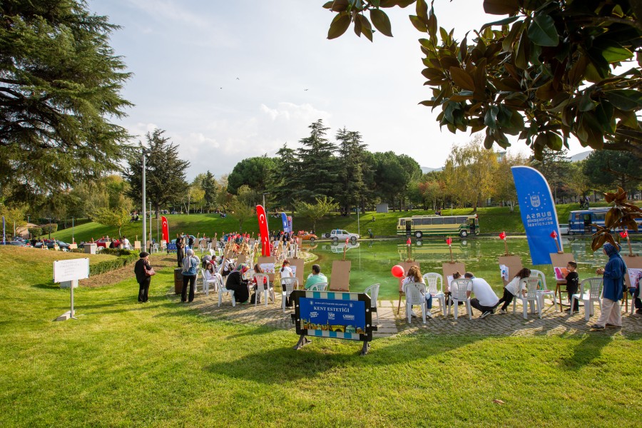Bursa Büyükşehir Belediyesi'nin Cumhuriyet'in 100'üncü yılı etkinlikleri kapsamında düzenlendiği açık hava resim yapma etkinliğine katılan yüzlerce çocuk, tuval başında hünerlerini gösterdi.