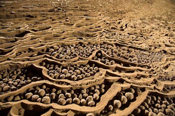 Mağarada, aynı zamanda bir suru değerli boncuklar var. Bu boncuklar yüz yıldır önce oluştu. Su damlaları kuruyunca kumda, kalk kabuğu oluşuyor ve kumdaki taş boncuk oluyor.