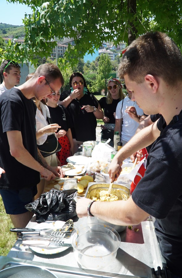 Büyükşehir Belediyesi adına Bursa Kültür Sanat ve Turizm Vakfı (BKSTV) tarafından Kültür Bakanlığı'nın destekleriyle Durmazlar ana sponsorluğunda gerçekleştirilen 35. Altın Karagöz Halk Dansları Yarışması, 17 ülkeden 650 dansçı ve 20 yerli grubun katılımıyla devam ediyor. Altın Karagöz Halk Dansları Yarışması'na katılan yarışmacılar, Açıkahava Tiyatrosu'nda yarışma heyecanına keyifli bir mola verdiler. Bursa Gastronomi Derneği'nin katkıları ile düzenlenen mini yemek yarışmasında, dansçılar bu kez becerilerini sahnede değil, mutfakta sergilediler. Ülkelerinden getirdikleri malzemelerle kendi kültürlerine ait yemeklerden yaparak diğer ülke dansçılarına ikram eden ekipler, ayrıca Türk şeflerin de yardımıyla, Bursa'ya özgü yemek ve tatlıları pişirmeye çalıştılar.